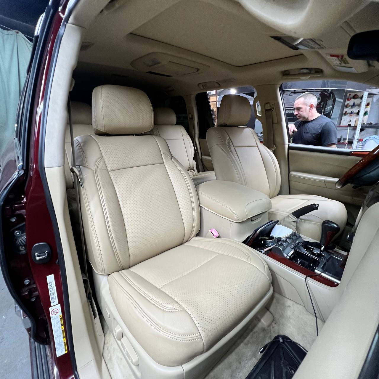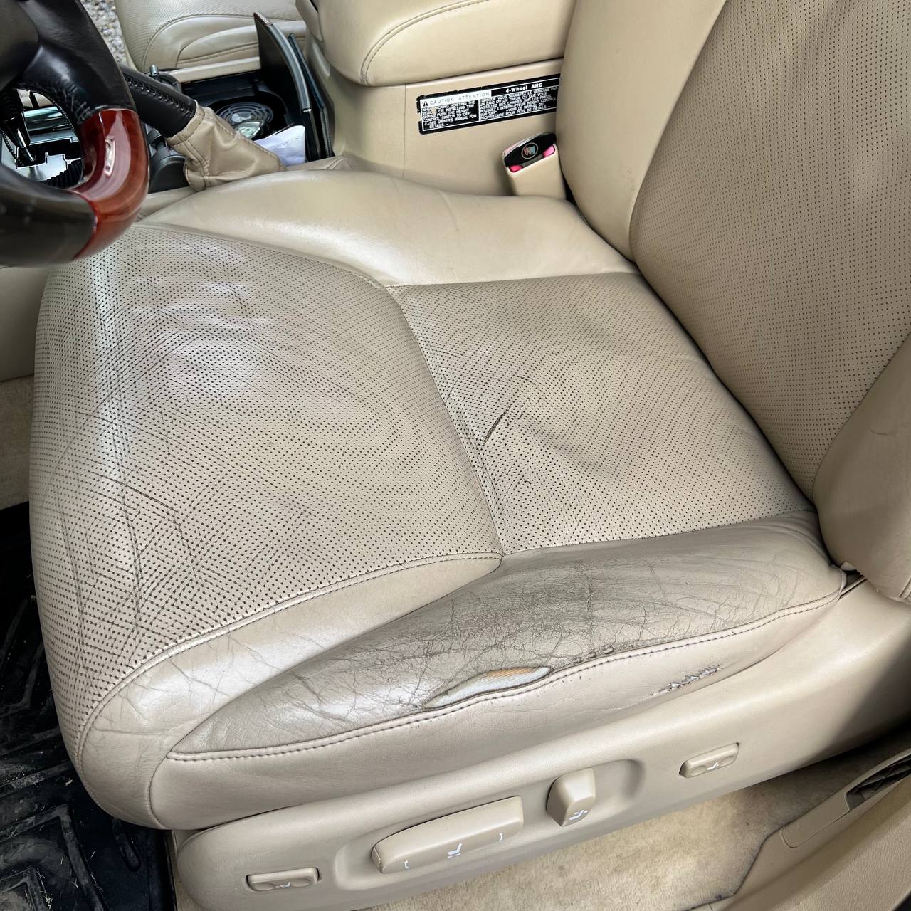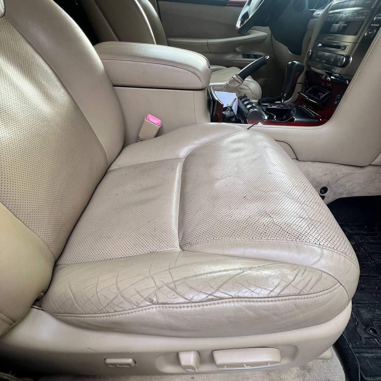 Проблема: Lexus LX 570, светлый салон. Состояние кресел, особенно водительского, — плачевное. Клиенту нужен быстрый и экономичный способ вернуть салону опрятный, «свежий» вид.